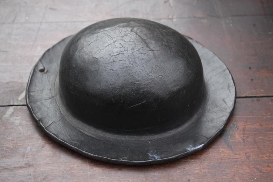 The great colour and almost fossilised hardness give the impression of great age. Probably a miners hat from the 19th Century
