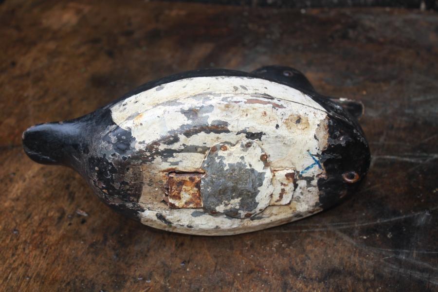 A very good late 19th century carved and painted decoy duck. Representing a Pochard Duck.