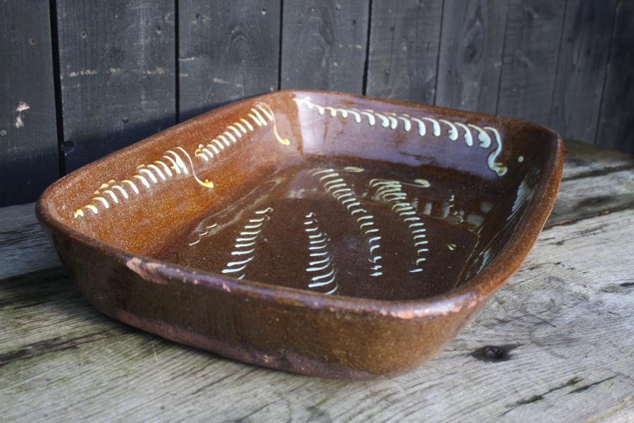 I love pots that make you think, this large, probably Yorkshire baking dish measures 65.5 cm across and weighs in at 21 Lbs 9.5 Kg add the contents of the pie the total would be possibly 15 kg or more, Now you would not want to pick a fight with the cook ! or server.