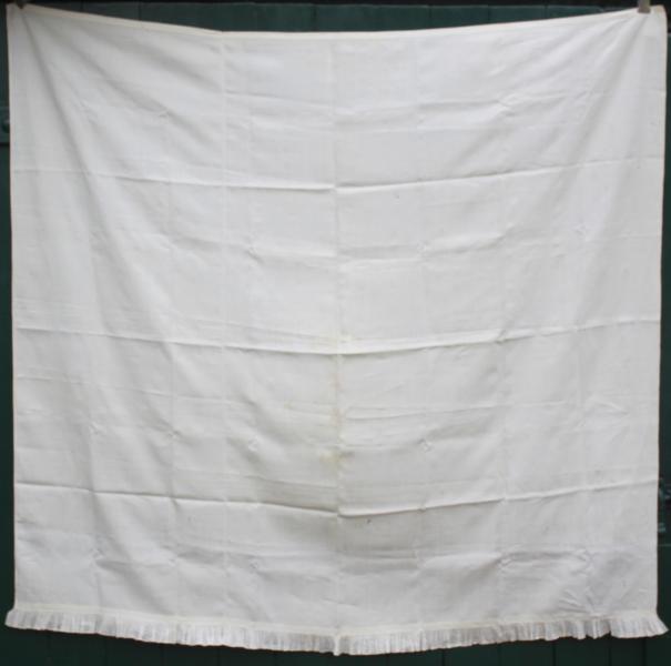 Occasionally one buys an object with some oral history, that can be supported with circumstantial facts...Bought in Suffolk privately with a tradition, that this very fine almost silk like, linen sheet came from The Royal Household at Sandringham, and that it had belonged to Queen Victoria.