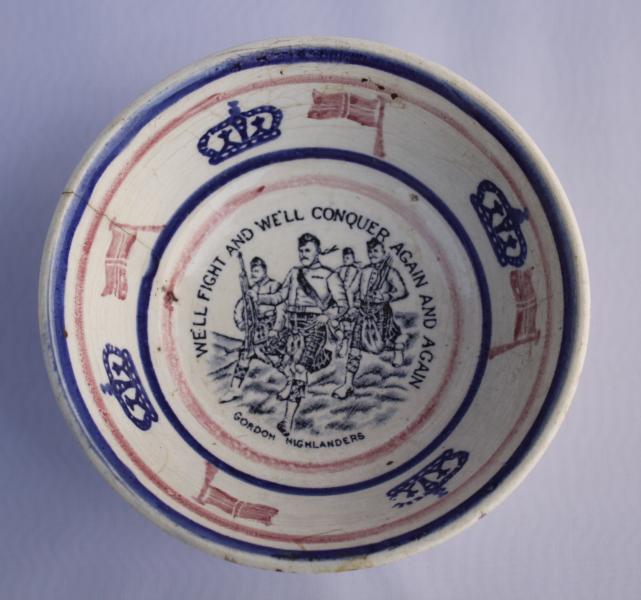 Scottish Motto spongeware bowl. Transfer printed verse with deep sponge border.