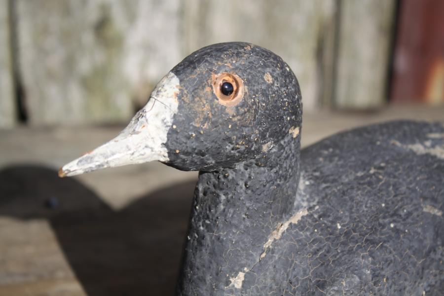 A rare early 20th century carved and painted cork decoy of a coot. A member of the rail family, Rallidae they are generally not eaten but used as a confidence bird to attract Mallard and the such.