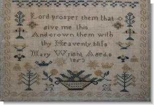 A classic 19th century sampler worked by Mary Wright aged only 8 in 1853.