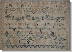 A simple border contains the alphabet in both upper (2 styles) and lower case letters with numbers 1 to 10 filling the end on rows, amusingly 1,2,& 3 on the second row the rest squashed at the end of the bottom band).