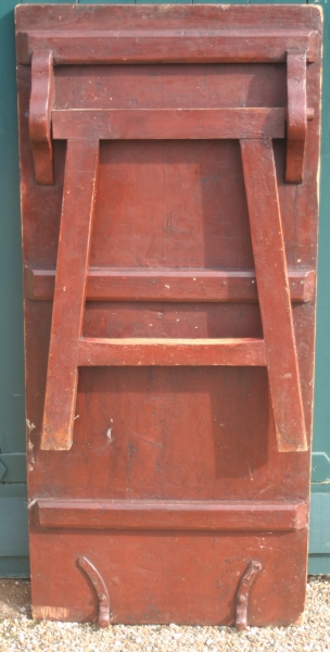The three plank top, with original surface including knife marks (it would have been a work top) with traditional deep red-paint on the underside.
