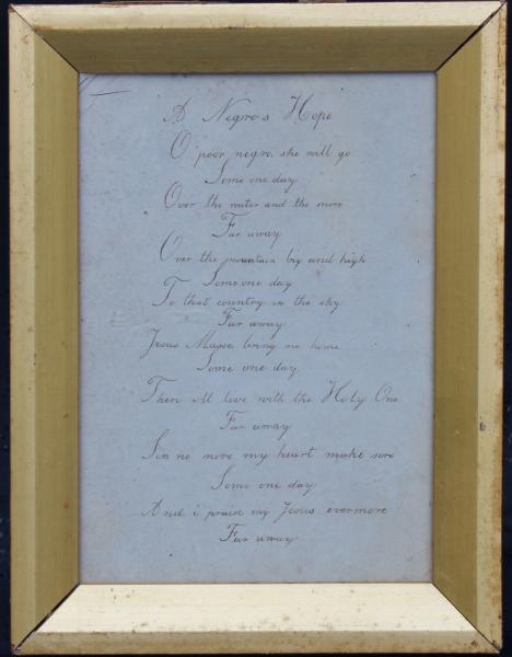 A rare and interesting piece of calligraphy, a hand written verse titled A NEGRO'S HOPE.