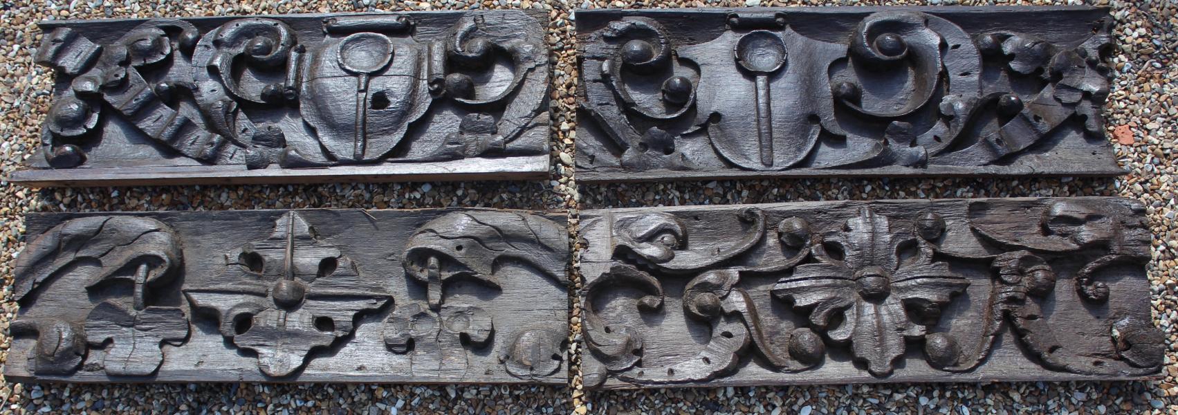 An incredible find, reused as part of a late 19th century day bed, is this carved beam, cut down so only the front remains, and unfortunately cut up in lengths, but the important central portion is good.