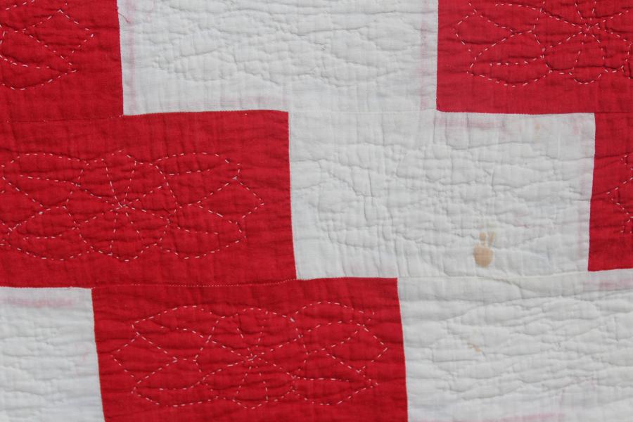 STRIKING AMERICAN RED & WHITE QUILT