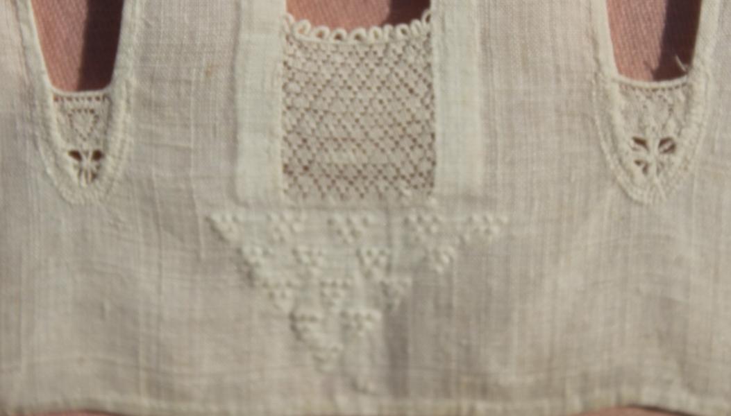 Hollie point has always been more or a domestic, rather than a professional. It was used primarily on baby clothes in the 18th and early 19th century, especially, christening sets. The lace was stitched in the crown of baby bonnets, or caps, and sometimes on a band that extended from the centre front of the cap to the nape of the neck. The shoulder seams of small shirts were decorated with initials, dates, and mottoes as demonstrated on this sampler. Signed and initialed S D 1716 to the top central panel with a variety of motifs in the linking panels.