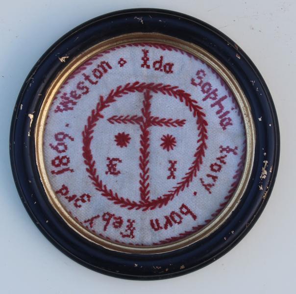 148 years ago today a little girl, Ida Sophia Ivory was born to Henry & Eliza Ivory. He, a Machinist from Weston in Hereford-shire living at 79 The High Street. The event commemorated by this rare birth sampler, possibly by her mother. Like many young women she went into service as a housekeeper, first for her Uncle before becoming a School Governess. |