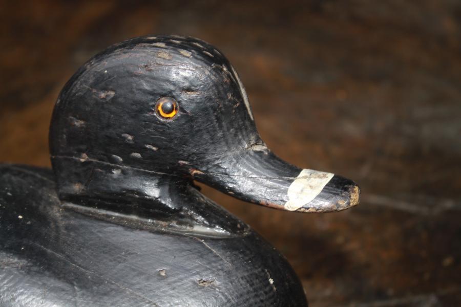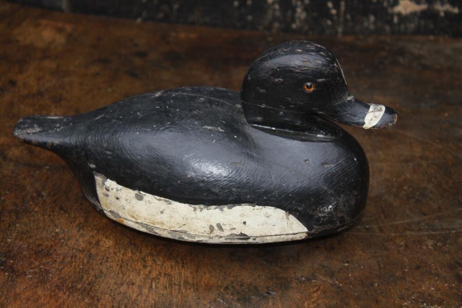 A very good late 19th century carved and painted decoy duck. Representing a Pochard Duck.
