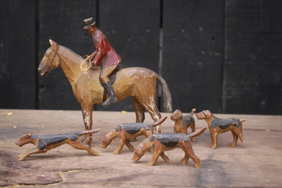 | HORSE & RIDER with DOGS, FOREST TOYs by Frank Whittington |