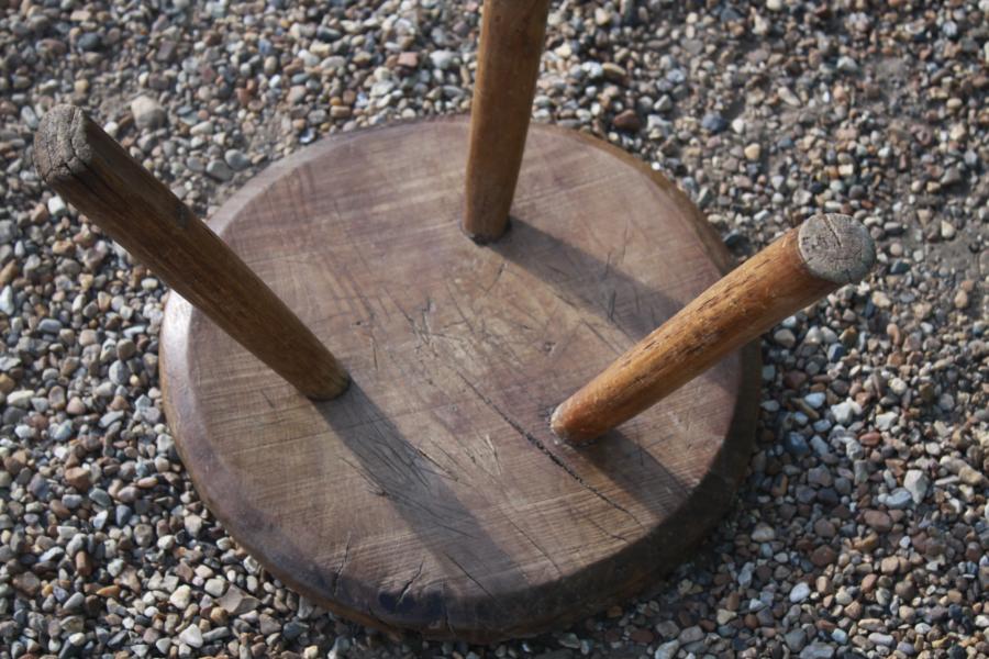 MILKING STOOL CIRCULAR ASH TOP.