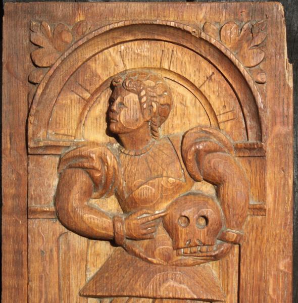 | GOOD Mid 16th Century panel GENTLEMAN WITH SKULL |