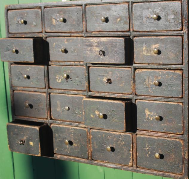 Wonderful nest of drawers, retaining original paint, some historically replaced handles .
