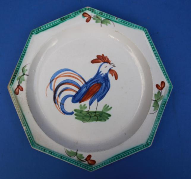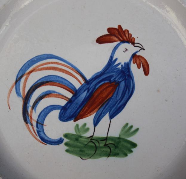 A wonderful late 18th / early 19th century French creamware plate depicting a cockerel.