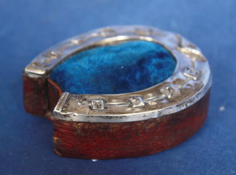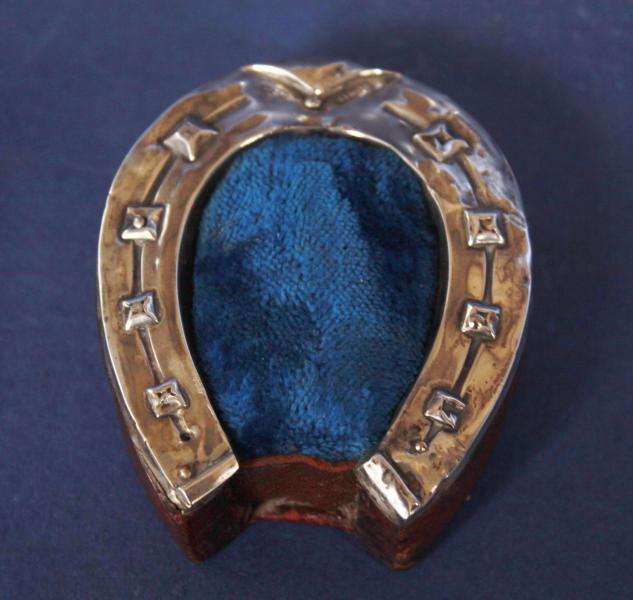 A relatively large horse shoe pin cushion dated to Birmingham 1903.