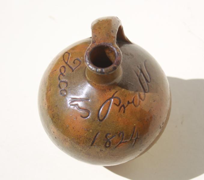 A very rare early 19th Century possibly Buckinghamshire / Coleshill Green pottery flask.