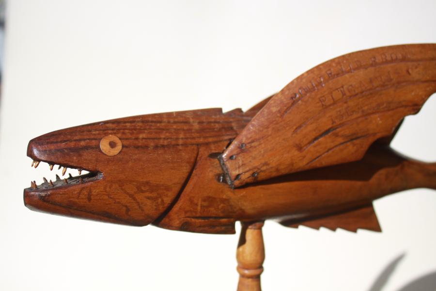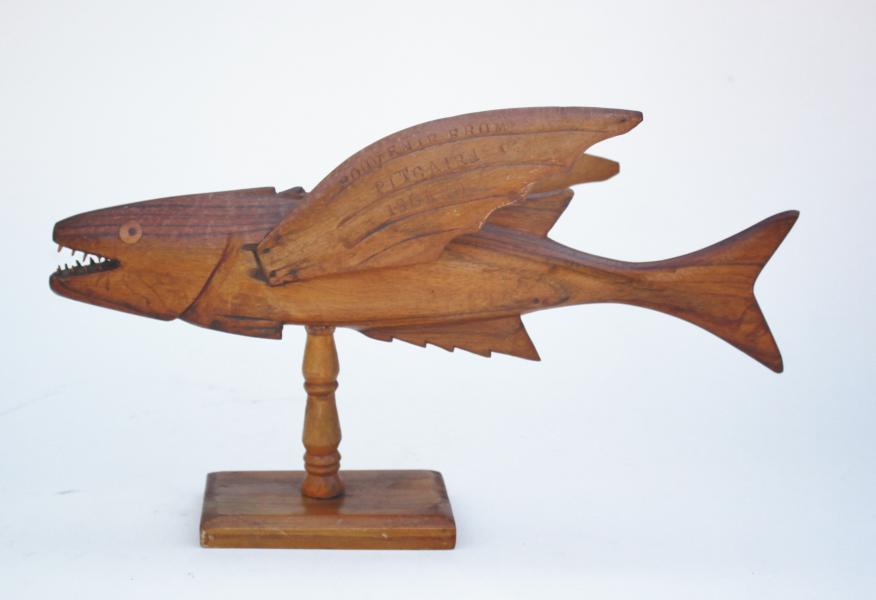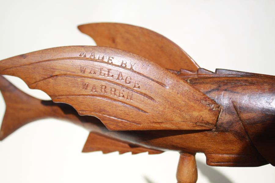 A classic Pitcairn Fish by WALLACE WARREN with inset eyes and teeth.
