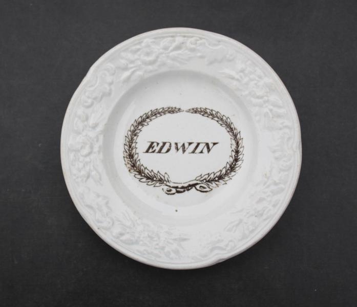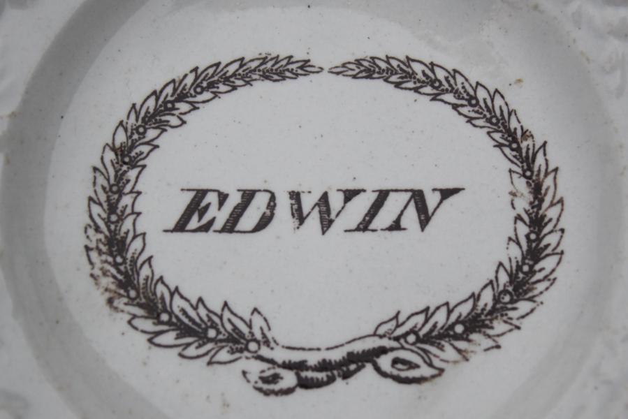 Mid 19th Century Staffordshire Childs plate with transfer printed name EDWIN.