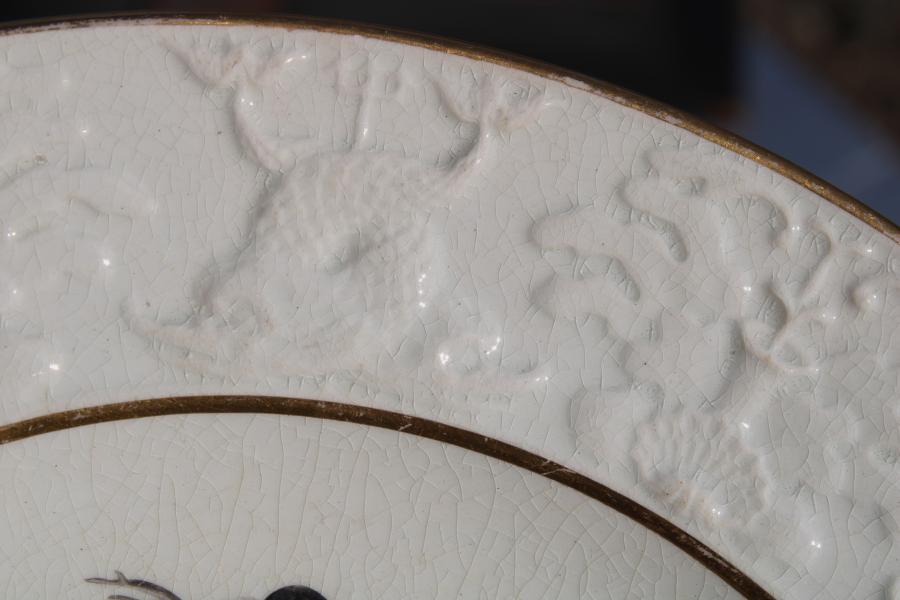 Creamware / earthenware plate impressed mark WILSON. with raised dolphin border,