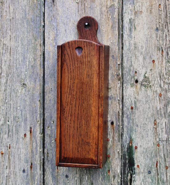 It may not have an expansive shaped top or exaggerated form, but this oak candle box with its simple box form gleams in its untouched original condition.