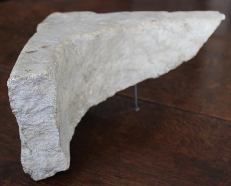 An important Romanesque Holy water stoup fragment depicting The Kings Head.