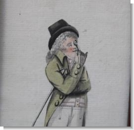 An interesting portrait that can be compared with another of the same subject , Titled No Body, a Prig at the beginning of the present Century, pair to All Body, a Prig at the beginning of the present Century which depicts a gentleman who who is not looking forward but accepting that nothing will change.