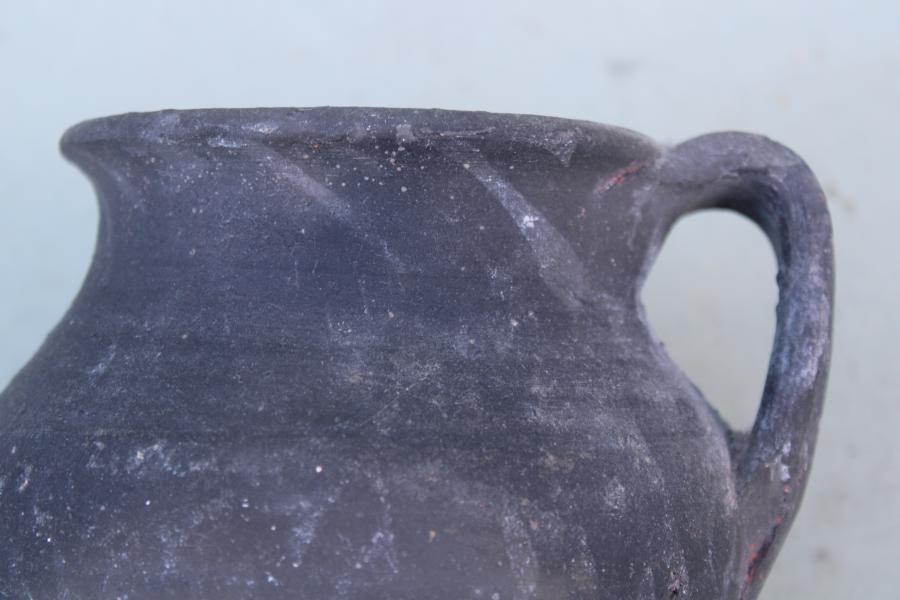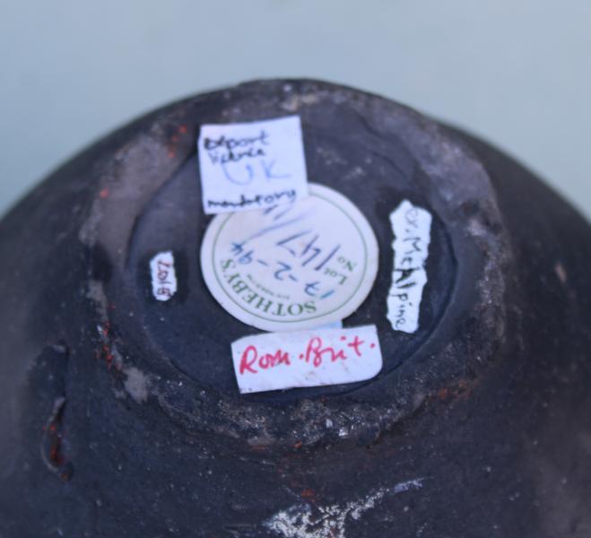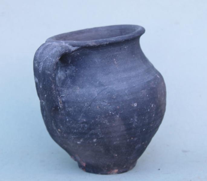 A rare Romano-British blackware pot of the 2nd-4th Century, retaining traces of painted decoration in the form of acanthus leaves. In a way coping the Greek pots of the 5th-4th Century .
