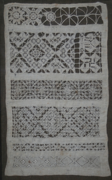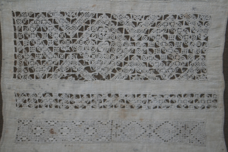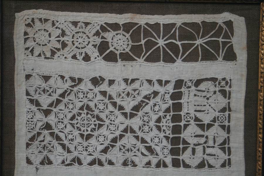 17th CENTURY WHITEWORK BAND SAMPLER