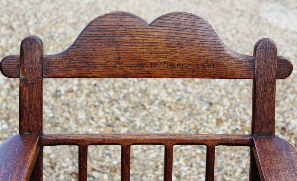There were a number of camps set up on the Island for Boar prisoners of war between 1900 to 1902, the first at Deadwood, later Deadwood No.2, Broadbottom, Fort High Knoll and at Jamestown. Many Prisoners to relieve boredom, and earn pocket money for tobacco of food turned to make curios and trinkets including toys that could be sold. We have found only one other piece of furniture a smaller folding chair from a camp in Bermuda in 1902. |