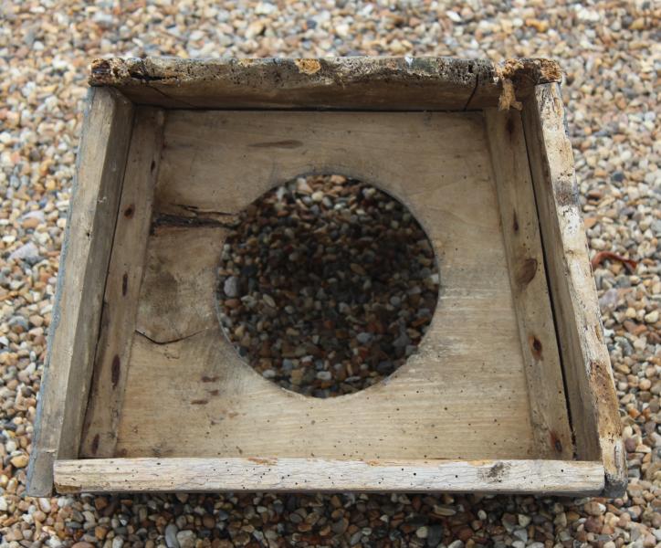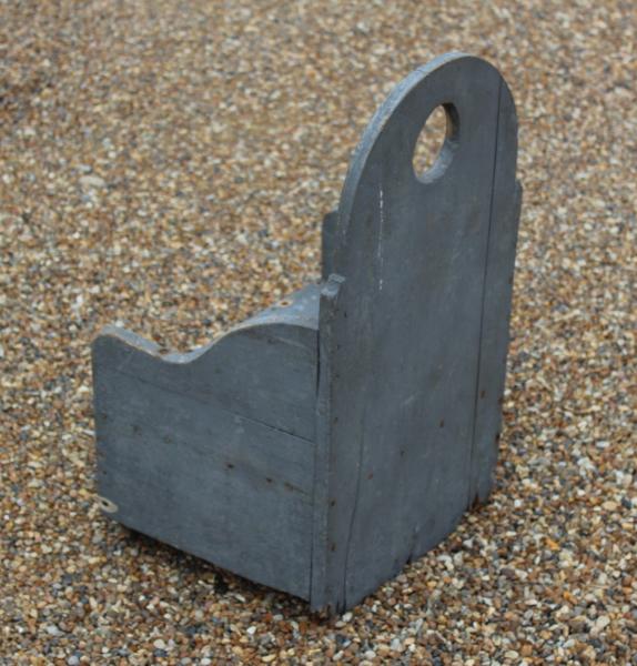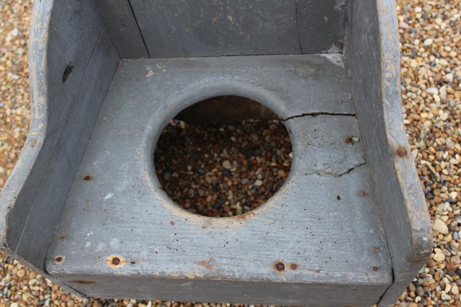 A wonderful naïve primitive late 19th century child's chair / commode retaining its original French grey painted decoration. Old nailed together but has charm and is genuine. , not a modern repainted old pine chair.