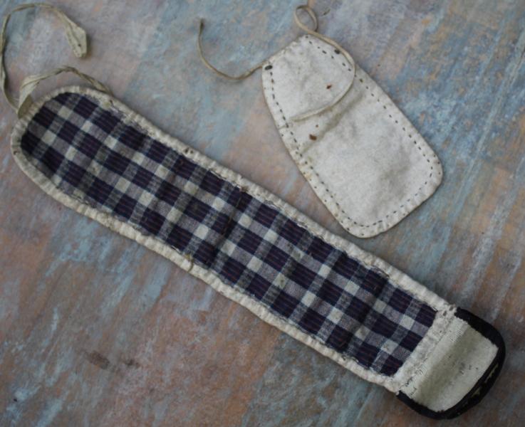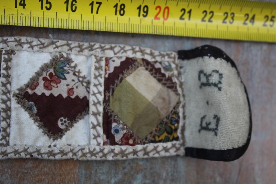 Georgian England the fashionable women's dress had no pockets, so the were an addition that was when required tied around the waist. We personally have never seen a smaller example, probably made for a doll .