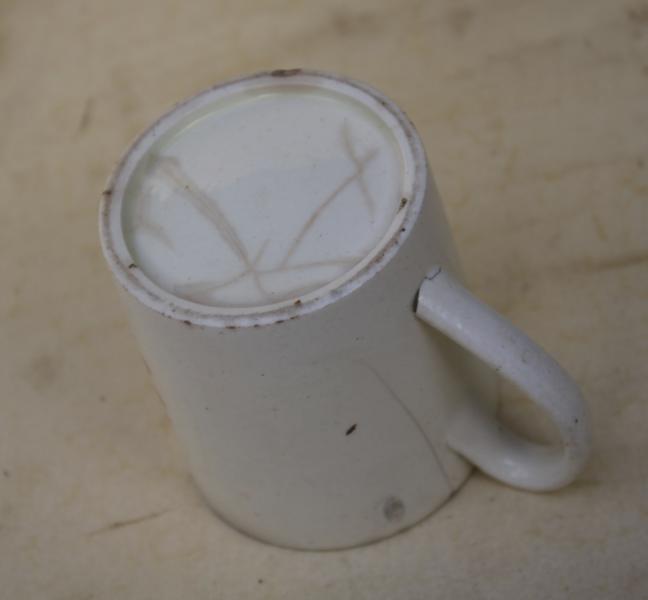 A delightful late 18th or very early 19th century creamware child's mug transfer printed in red . Possibly Leeds.