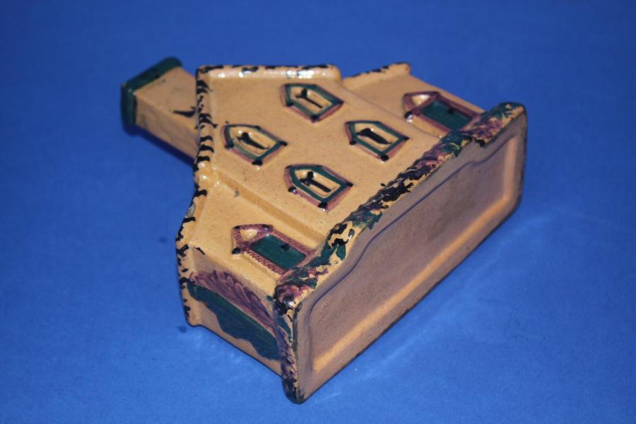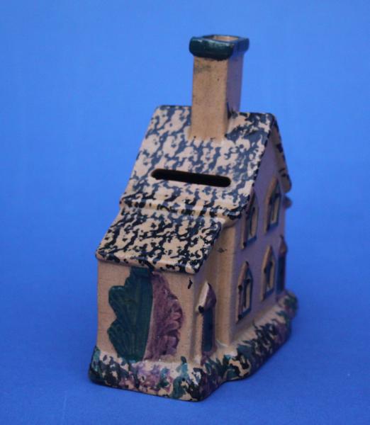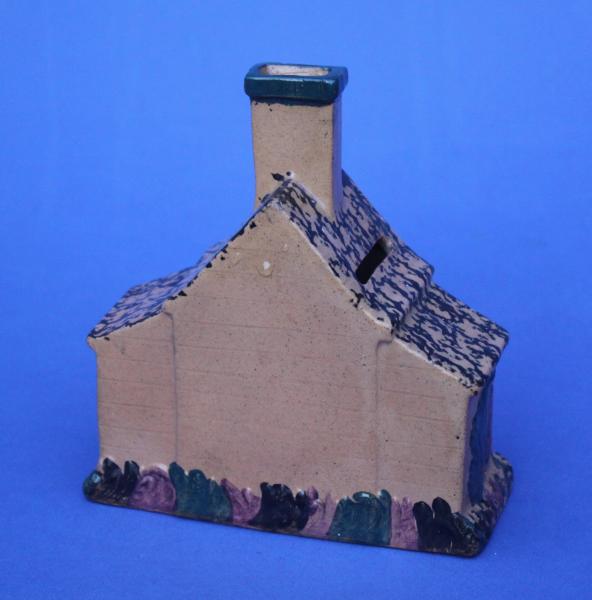 Have always been interested in coloured-body earthenwares, quite uncommon in figures like this Yorkshire Cottage Money Box. circa 1820. If it was Davenport or Wedgwood it would be given a fancy name like "Chalcedony".