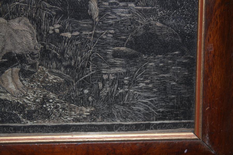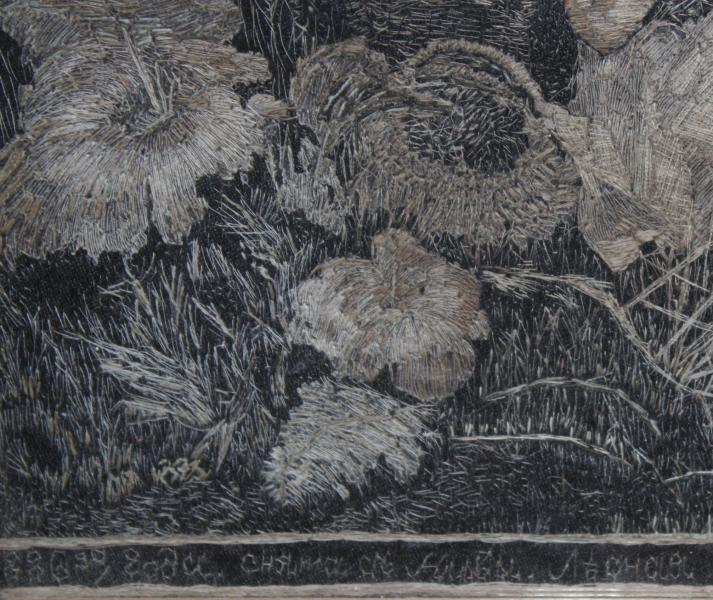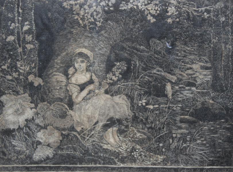 Worked by Sophie M.Kachka ( probably from the Ukraine) during the 69th year of her life. The image is taken from a famous Russian magazine "Niva" and is a scene from "The Forest Fairy Tale" the authors name is in the inscription ?. |