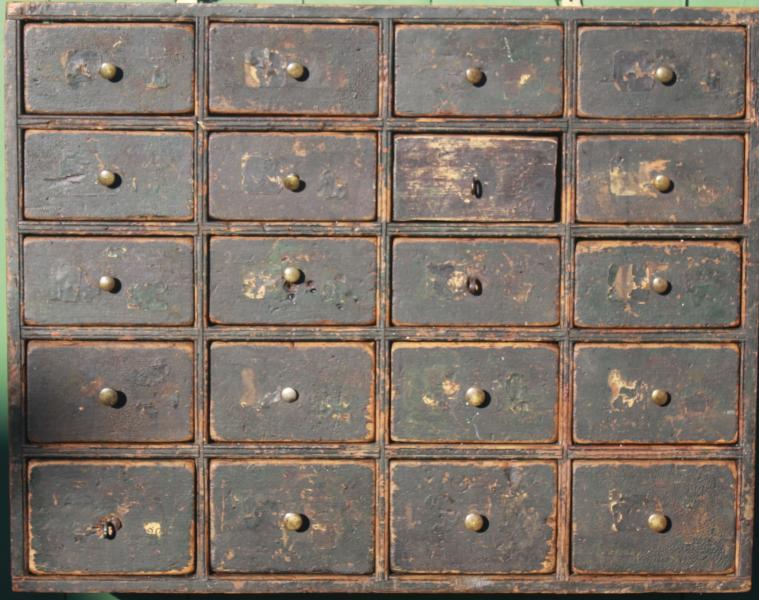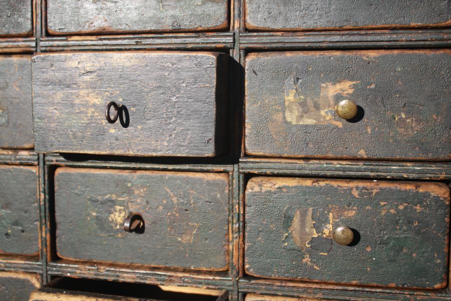 Wonderful nest of drawers, retaining original paint, some historically replaced handles .