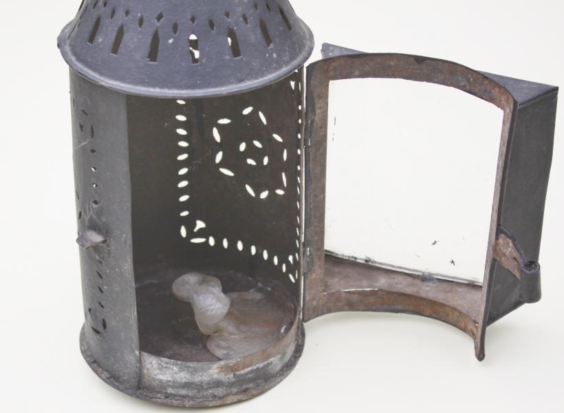 Mid 19th century French sheet iron / tin lantern. Large single window with pierced back and sides.