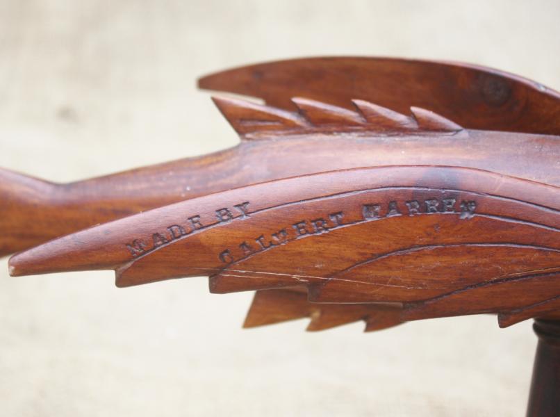 This is a fine example of a carved flying fish. A souvenir of Pitcairn Island, signed by Calvert Warren.