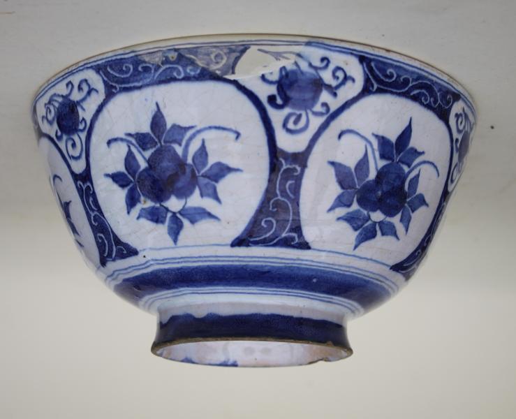 A classic late 17th or early 18th century English Delft Bowl, with straight sides.