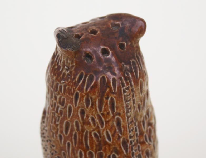 A very rare and not previously seen by us owl Brampton Pepper pot in the form of a long ear owl.