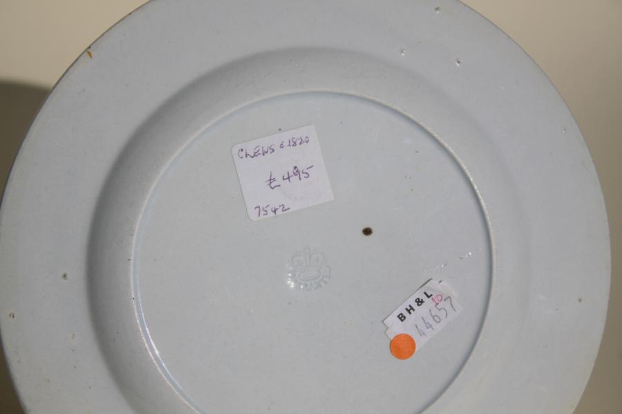 Black printed pearlware with moulded border highlighted in Pratt colours.