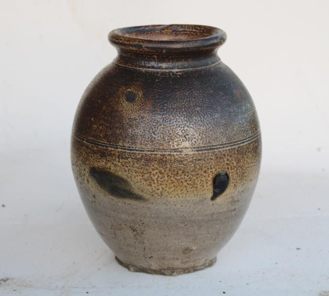 A wonderful salt gaze storage jar , London circa 1700 , classic orange peel texture to the glaze and natural ware to the foot rim.