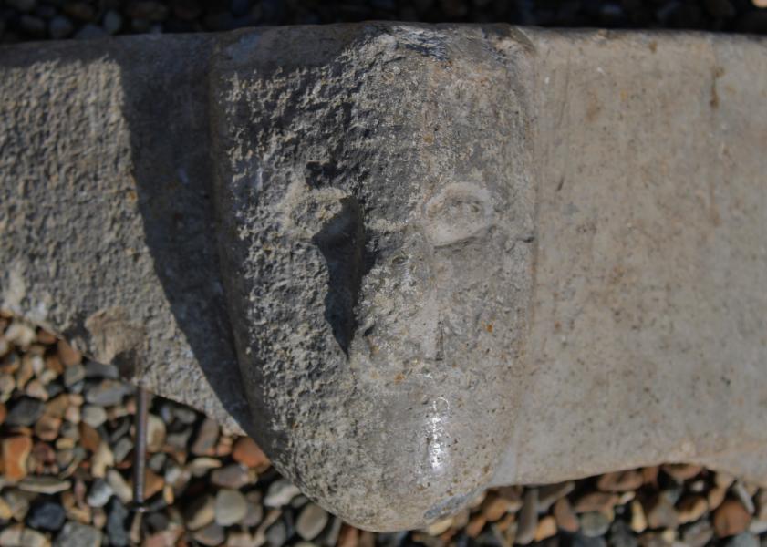 An important Romanesque Holy water stoup fragment depicting The Kings Head.