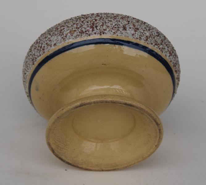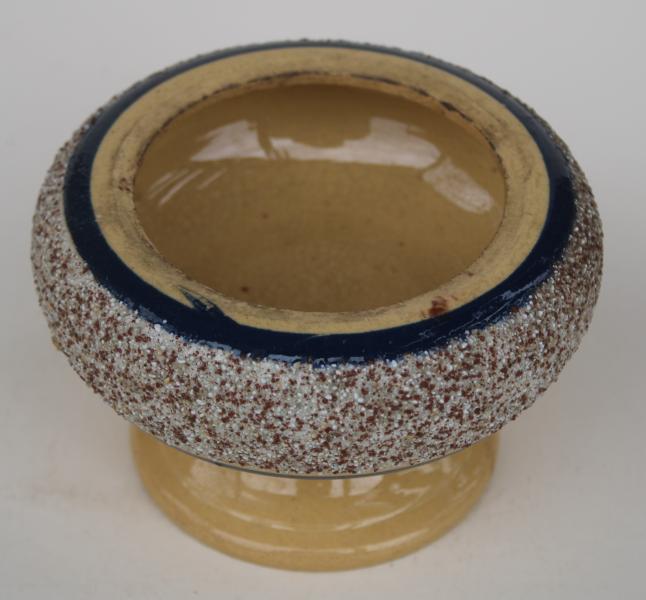 A very unusual form, a large Yellow ware master salt or with the external grog surface this may have been intended as a match striker .
