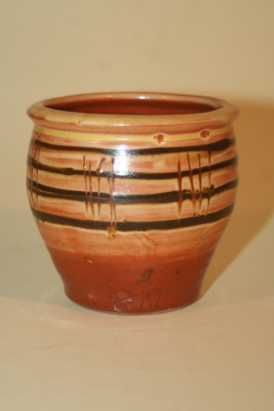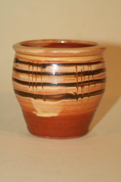 Rare beautifuly thrown pot decorated with slip rings and lightly combed. fully signed.