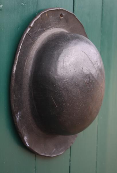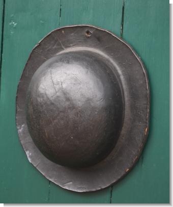 The great colour and almost fossilised hardness give the impression of great age. Probably a miners hat from the 19th Century