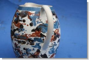 Condition, unrestored. some flaking to side. Damage around spout and a short crack near handle.