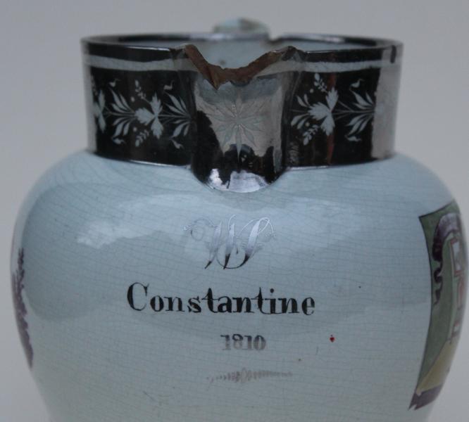 we may never know who W.J.Constantine was , who had this interesting jug made in 1810 , but I love the hand painted image on one side that has led left us a puzzle !