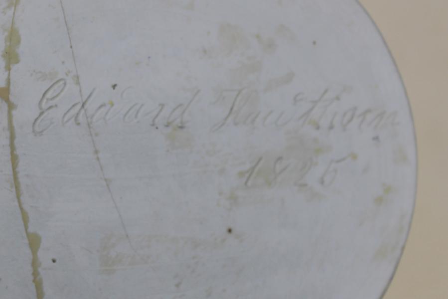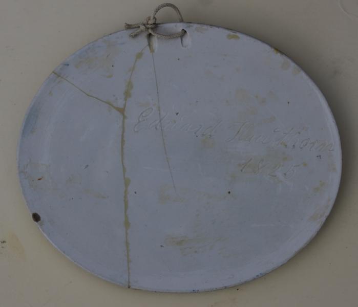 Important pearlware plaque decorated in pratt coloure. The back signed EDWARD HAWTHORN 1825.
